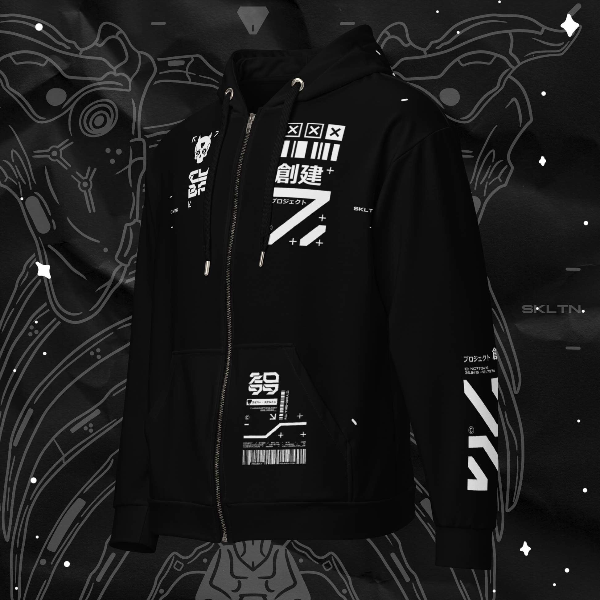 Projekt: CYBR SKLTN All-Over Print Zip Hoodie